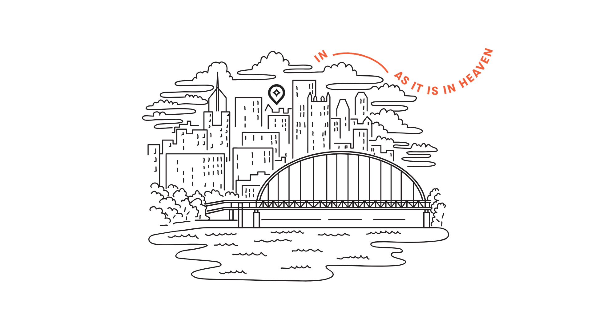 Pittsburgh Cityscape with “In, As It Is In Heaven”
