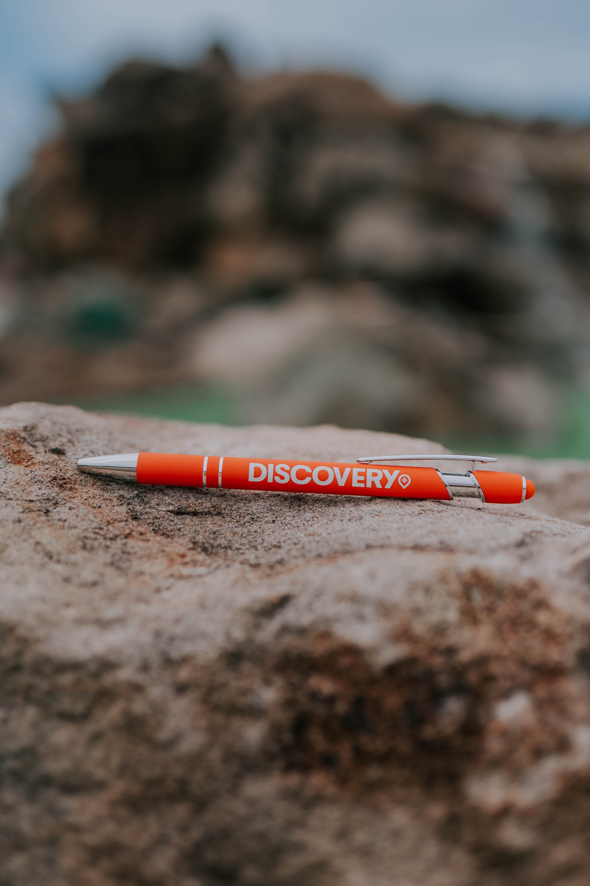 Dual-function comfort. Elevate your everyday writing with the Discovery Gel Pen — a sleek, all-aluminum pen featuring a vibrant orange rubber barrel, comfortable grip, and smooth black gel ink. Whether you're jotting sermon notes or navigating your phone screen, the integrated stylus lets you switch seamlessly from paper to device.