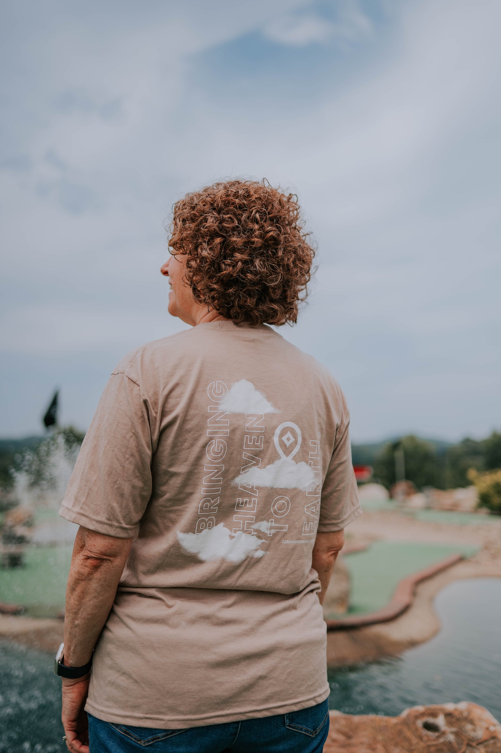 Back: “Bringing Heaven to Earth” full print with cloud elements