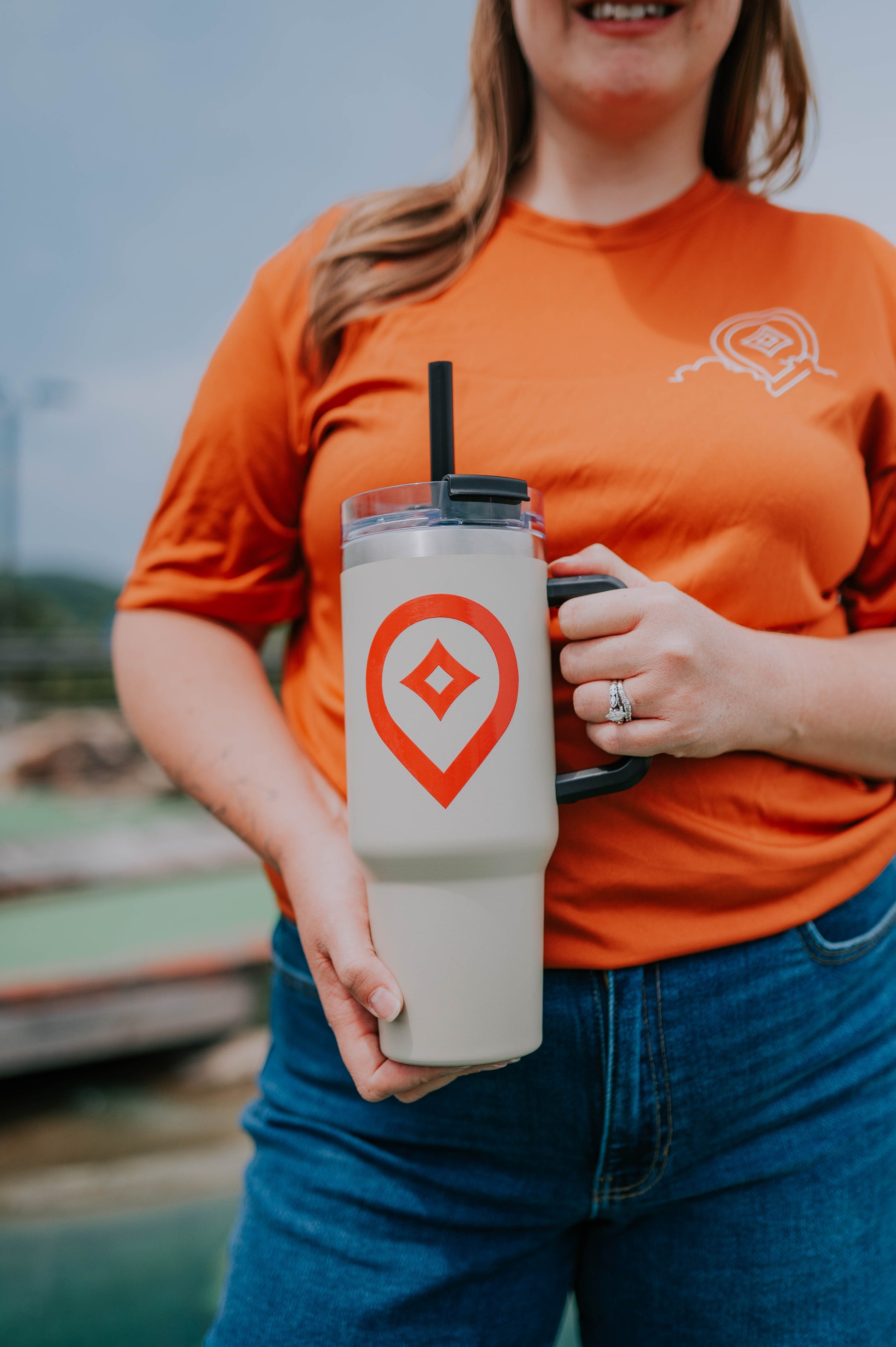 Crafted from 90% recycled stainless steel, this 40 oz insulated travel mug is built to keep your drinks cold for up to 24 hours or hot for up to 8. With a screw-on lid and reusable straw, it's perfect for long commutes, small group meetups, or staying fueled on Sundays.